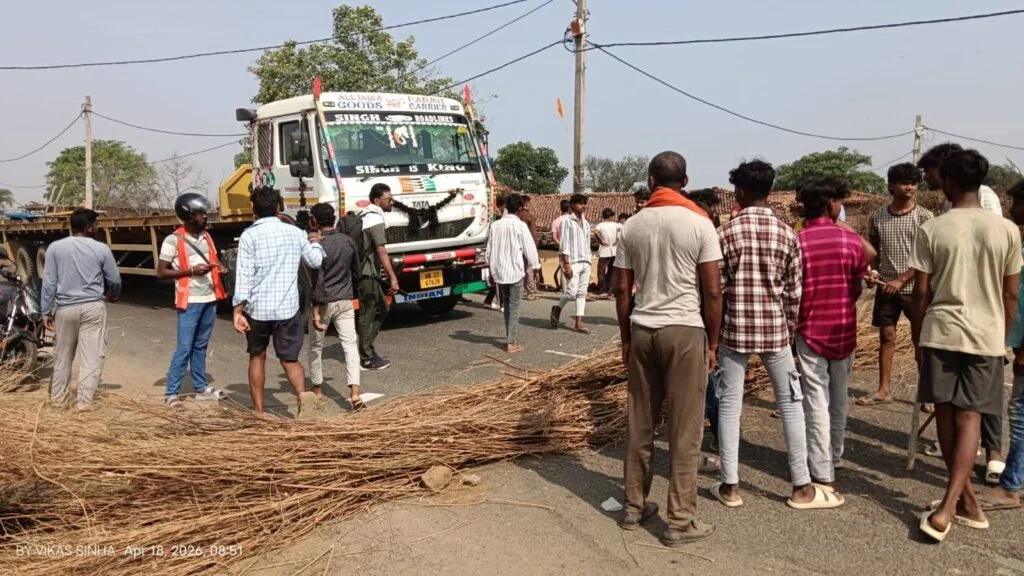 पुलिस के देर से आने से नाराज ग्रामीणों ने किया पथराव, मुआवजा की मांग को लेकर किया सड़क जाम