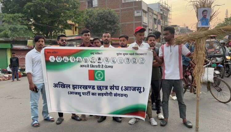 आजसू छात्र संघ ने फूंका मुख्यमंत्री हेमंत सोरेन का पुतला भ्रष्टाचार में लिप्त प्रशासन को संरक्षण देने और 10 वर्षों से जेटेट परीक्षा नही कराने का लगाया आरोप