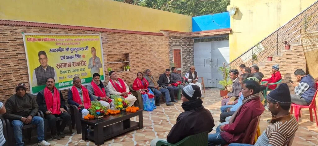पीरटांड़ में चुन्नूकांत को अधिवक्ता संघ के पांचवी बार महासचिव बनने पर तथा तीसरी बार मंडल अध्यक्ष चुने जाने पर अजय सिंह को किया सम्मानित