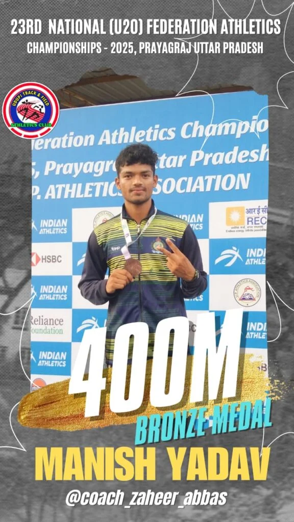 आज से शुरू हो रहे प्रतियोगिता में पूरे देश के सभी राज्यों से 2100 एथलीटों के बीच बालक अंडर 20 वर्ष आयु में मनीष यादव 400 मीटर एवं मिक्स रिले दौड़ के लिए अपना शत-प्रतिशत योगदान देंगे। इसके पूर्व मनीष यादव ने 22 से 24 सितंबर तक रांची में आयोजित 400 मीटर में रजत पदक एवं मिक्स रिले में स्वर्ण पदक जीत चुके हैं।