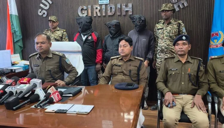 गिरिडीह। साइबर अपराध के विरुद्ध गिरिडीह पुलिस सजग है और इसे लेकर एक बार फिर गिरिडीह पुलिस को बड़ी कामयाबी हासिल हुई है। पुलिस ने अलग-अलग राज्यों के 26 साइबर अपराध में संलिप्त तीन मुख्य साइबर अपराधियों को गिरफ्तार किया है। इसके साथ ही उनके पास से 4 मोबाइल फोन एवं 5 सिम कार्ड जब्त लिए गए हैं। उक्त जानकारी एसपी डॉ बिमल कुमार ने मंगलवार को प्रेसवार्ता आयोजित कर दी। उन्होंने बताया कि जिले के ताराटांड़ थाना क्षेत्र अंतर्गत बड़कीटांड-जबरदाहा मुख्य मार्ग पर कुछ साइबर अपराधियों द्वारा ठगी किए जाने की सूचना मिली थी। जिसके बाद साइबर डीएसपी आबिद खा के नेतृत्व में टीम गठन कर छापेमारी की गई।