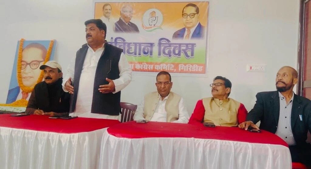 गिरिडीह। जिला कांग्रेस कार्यालय में बुधवार को संविधान दिवस को संविधान बचाओ दिवस के रूप में मनाया गया। इस दौरान जिलाध्यक्ष सतीश केडिया के नेतृत्व में पार्टी के कार्यकर्ताओं ने अंबेडकर चौक पहुंचे और बाबा साहेब अंबेडकर की प्रतिमा पर माल्यार्पण किया एवं संविधान की रक्षा करने का संकल्प लिया। इस मौके पर जिला कांग्रेस कार्यालय में एक संविधान बचाओ गोष्टी का आयोजन किया गया। जिसमें मौजूद जिले भर से आए कांग्रेसियों ने संविधान बचाने हेतु अपने-अपने विचारों को रखा।