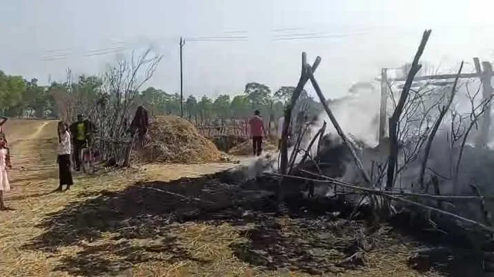 खलिहान में आग लगाने से हजारों का धान व पुआल जलकर हुआ राख