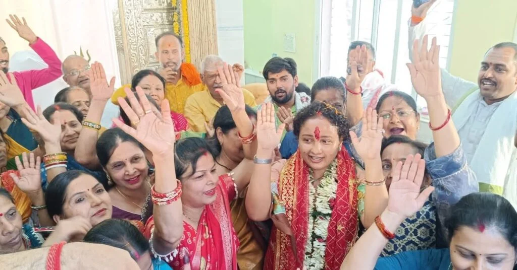 गांडेय विधायक कल्पना सोरेन पहुंची संतोषी माता मंदिर, मां का दर्शन टेका माथा
