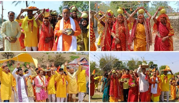 शनिवार सुबह गाजे-बाजे और पारंपरिक रीति-रिवाजों के साथ कलश यात्रा यज्ञ स्थल से निकाली गई। इस दौरान भारी संख्या में पीले और लाल वस्त्रों में सजी महिलाओं और कन्याओं ने माथे पर कलश धारण किया।