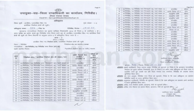 गिरिडीह निगम क्षेत्र के सभी वार्ड आरक्षण के लिए उपायुक्त ने जारी की अधिसूचना, 36 वार्ड में महिलाओं के लिए आरक्षित की गई 16 सीटे