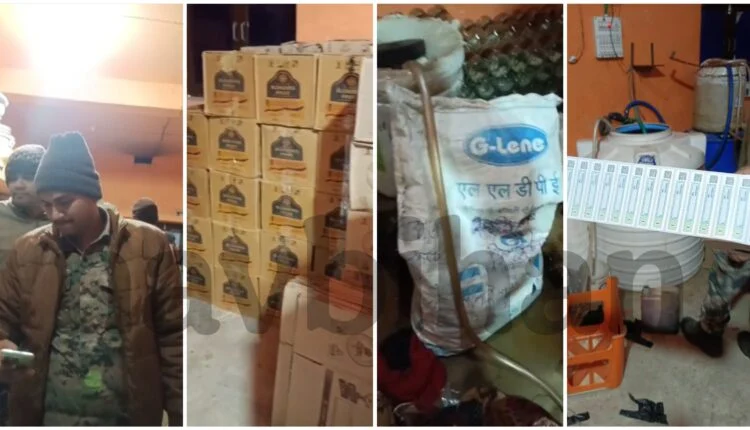 गिरिडीह – हजारीबाग बॉर्डर पर नकली विदेशी शराब फैक्ट्री का भंडाफोड़, करीब 80 लाख की अवैध शराब जब्त
