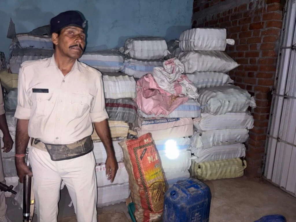 गिरिडीह। उपायुक्त राम निवास यादव के निर्देश पर गिरिडीह के अधीक्षक उत्पाद शिव कुमार साहू के द्वारा नकली और अवैध शराब के खिलाफ छापेमारी अभियान चलाया गया। इस दौरान उत्पाद अधीक्षक द्वारा उत्पाद विभाग के अवर निरीक्षक रवि रंजन के नेतृत्व में गठित टीम के द्वारा गुप्त सूचना के आधार पर भरकट्टा थाना के अंतर्गत चिताखारो गाँव में एक धान के गोदाम में छापेमारी की गई। छापेमारी के दौरान अवैध विदेशी शराब बनाने वाली सामग्री जप्त की गई।