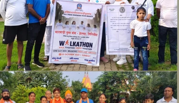 गिरिडीह। मारवाड़ी युवा मंच गिरिडीह व प्रेरणा शाखा द्वारा रविवार की सुबह शहर के साई मंदिर के पास चिल्ड्रन पार्क में वॉकथॉन कार्यक्रम का आयोजन किया गया। कार्यक्रम का मुख्य उद्देश्य था जन-जन को स्वास्थ्य के प्रति जागरूक करना और वॉक करने से होने वाले फायदे से अवगत कराना था।