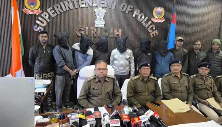 गिरिडीह। बीते तीन जनवरी को जमुआ थाना क्षेत्र के भुपतडीह में कुछ लोगों द्वारा जमीन विवाद को लेकर मारपीट व फायरिंग की घटना को अंजाम दिया गया था। घटना के 48 घंटे के अंदर पुलिस ने कार्रवाई करते हुए मामले में संलिप्त सात अपराधियों को गिरफ्तार कर लिया है। अपराधियों के पास से पुलिस ने तीन देसी कट्टा, 23 जिंदा गोली, चार मैगजीन घटना में प्रयुक्त एक सेंट्रो कार और दो बाइक को जब्त किया है। मंगलवार को एसपी डॉ. विमल कुमार ने प्रेसवार्ता के माध्यम से उक्त जानकारी देते हुए कहा कि गिरफ्तार अपराधियों में रामू साव, विजय साव, संजय कुमार उर्फ संजय मंडल, पंकज कुमार यादव उर्फ कारू यादव, अमित कुमार उर्फ अमित वर्मा, नारायण मंडल और राज कुमार मंडल शामिल है। प्रेसवार्ता के दौरान एसपी डॉ. विमल कुमार ने बताया कि 3 जनवरी को जमुआ थाना क्षेत्र के भूपतडीह गांव निवासी संतोष कुमार विश्वकर्मा नामक व्यक्ति ने 5-6 की संख्या में आए अपराधियों के द्वारा उनके ऊपर फायरिंग और मारपीट करने को लेकर प्राथमिकी दर्ज कराई गई थी। बताया कि घटना के दौरान फायरिंग कर भागने के क्रम में रामु साव नामक अभियुक्त द्वारा कॉक किया हुआ पिस्टल को कमर में खोसने के क्रम में उससे ट्रिगर दब गया, जिससे उसके जांघ में गोली लग गई, जिससे वह गंभीर रूप से घायल हो गया था। उसका ईलाज धनबाद में चल रहा है।
