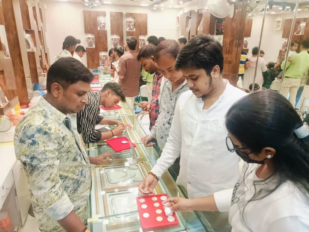 धनतेरस के मौके पर शुभ मुहुर्त को देखते हुए लोगों ने खरीददारी करने के लिए बाजार पहुंचे। खासकर ज्वेलरी सोप में दिन भर महिलाओं व युवतियों की भीड़ देखी गई। महिलाएं और युवतियां अपनी पसंद की ज्वेलरी की खरीददारी की। इस क्रम में लक्ष्मी-गणेश के फोटो से अंकित चांदी के सिक्कों की काफी अच्छी ब्रिकी हुई। विशेषज्ञों के अनुसार धनतेरस के मौके पर सर्राफा कारोबार भी 12 करोड़ से अधिक का ही हुआ। जबकि इलेक्ट्रिक और इलेक्ट्रोनिक दुकानों में एलईडी, फ्रिज, वांशिग मशीन, गिजर और घर के सजावट के लिए झालर खरीदने के लिए ग्राहकों की काफी भीड़ रही।