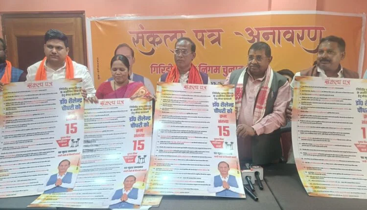 गिरिडीह। नगर निगम चुनाव को लेकर भाजपा समर्थित महापौर प्रत्याशी डॉ. शैलेन्द्र चौधरी ने सोमवार को अपना संकल्प पत्र जारी कर दिया है। शहर के एक होटल में आयोजित प्रेसवार्ता के माध्यम से उन्होंने जानकारी दी। प्रेसवार्ता में बतौर अतिथि उपस्थित पूर्व प्रदेश अध्यक्ष सह पूर्व सांसद रविन्द्र राय, पूर्व मंत्री राज पालिवाल भाजपा महानगर जिलाध्यक्ष रंजीत राय, पूर्व विधायक प्रो0 जय प्रकाश वर्मा, जिप अध्यक्षा मुनिया देवी, पूर्व जिला अध्यक्ष महादेव दुबे, प्रदेश कार्यसमिति सदस्य चुन्नूकांत एवं पूर्व मेयर सुनील पासवान ने संयुक्त रूप से संकल्प पत्र का अनावरण किया।
