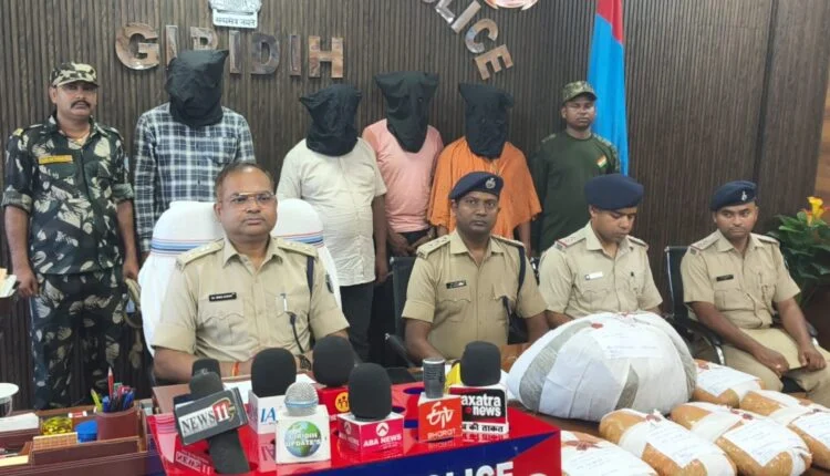 नशीले पदार्थों की तस्करी मामले में गिरिडीह पुलिस को मिली बड़ी सफलता, 10 किलो गांजा के साथ 4 तस्कर गिरफ्तार,