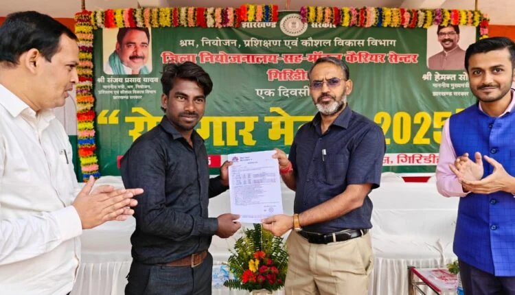 गिरिडीह। जिला नियोजन कार्यालय के द्वारा मंगलवार को झंडा मैदान में रोजगार मेला का आयोजन किया गया। मेला का उद्घाटन उपायुक्त रामनिवास यादव, नियोजन पदाधिकारी इमरान फारुकी, नजारत उपसमाहर्ता आशुतोष ठाकुर व सहायक निदेशक सामाजिक सुरक्षा कौशिक अप्पु ने संयुक्त रूप से दीप प्रज्वलित कर तथा फीता काटकर किया गया। मेला में मोंगिया ग्रुप, सलूजा गोल्ड ग्रुप, टफकॉन स्टील, वेंकटेश स्पोंज आयरन, मरसी हॉस्पिटल, एलएंडटी कंपनी, बालमुकुंद स्टील ग्रुप, अतिबीर इंडस्ट्री, उत्तर प्रदेश के बंसल वायर कंपनी, महाराष्ट्र के गोयम ग्रुप समेत 24 प्रतिष्ठानों व संस्थानों के द्वारा स्टॉल लगाया गया था।