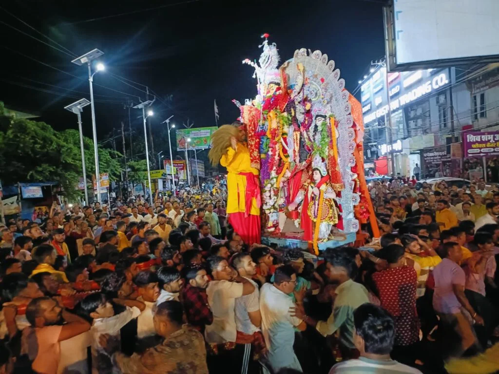 भक्तों के कांधे पर विजर्सन के लिए गई बड़की मईया व छोटकी मईया सहित शहर की चार प्रतिमाएं