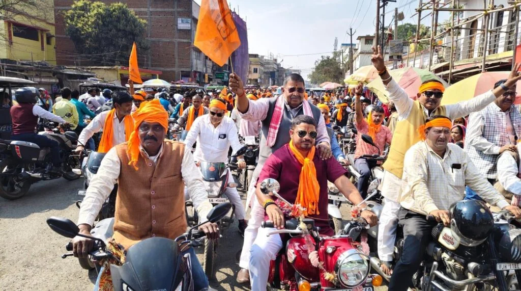 भाजपा समर्थित उम्मीदवार शैलेंद्र चौधरी ने बाइक रैली निकाल किया शक्ति प्रदर्शन,