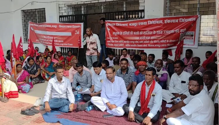 मधुबन के कोरिया बस्ती के मामले को लेकर भाकपा माले ने दिया धरना