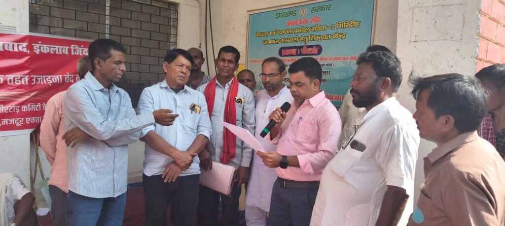 मौके पर धरना का नेतृत्व कर रहे भाकपा माले के जिला सचिव अशोक पासवान, किसान नेता पूरन महतो, जिला कमिटी सदस्य अजीत राय, माले नेता राजेश सिन्हा, असंगठित मजदूर मोर्चा के केंद्रीय सचिव कन्हाई पांडेय ने कहा कि किसी भी हालात में न हो दलितों के बस्ती को उजड़ने दिया जाएगा और न ही दलितों के जमीन को लूटने ही दिया जाएगा। कहा कि बड़े बड़े बिल्डिंग कैसे बने,उसका पूरा जांच होनी चाहिए। कहा कि एक तरह हेमंत सरकार कहती है कि जंगल में रहने वाले को वन पट्टा दिया जाएगा, वहीं दूसरी तरफ वन विभाग गरीबों को उजाड़ने का काम कर रही है। कहा कि माले किसी भी दलितों को अत्याचार नहीं सहने देगी। भले हम सरकार के घटक दल है किंतु गरीबों, दलित, आदिवासियों के जमीन पर कब्जा नहीं होने देंगे।