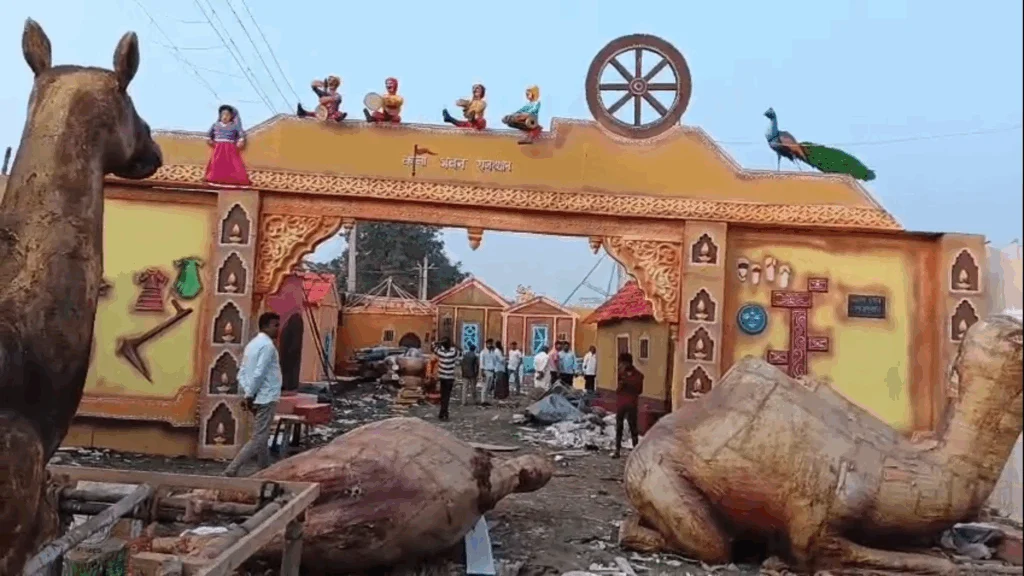 मेले में प्रवेश के साथ राज कचहरी परिसर में राजस्थान के चौकीधानी में पहाड़ के ऊपर किला और राजस्थानी ग्रामीण परिवेश के उत्कृष्ट नजारा दिखेगा. नदी पर पुल के रूप में तिरुपति बालाजी मंदिर सदृश्य का सुंदर थीम पर पंडाल का निर्माण हो रहा है. नदी के पूर्वी घाट पर मंगोलिया के एक मंदिर की तरह सूर्य मंदिर का पंडाल का नजारा भी लोगों को मंत्रमुग्ध करेगा । जो अपने आप में बहुत ही खुबसुरत और आकर्षक का केंद्र है।