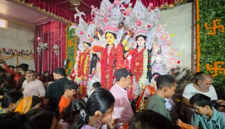 भक्तों ने श्रद्धा भाव से की मां शक्ति के आठवें स्वरूप महागौरी की पूजा अर्चना कई दुर्गा मंडपों में पूजा के लिए भक्तों को घंटो लाइन में रहना पड़ा खड़ा