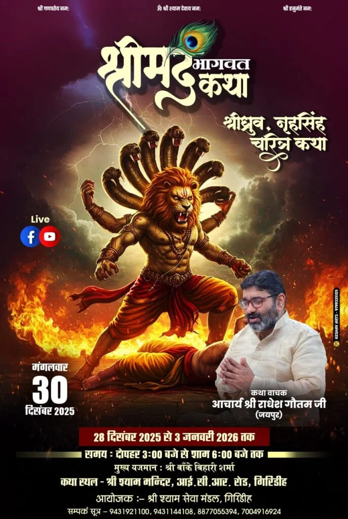 28 दिसंबर से 3 जनवरी तक चलेगा श्रीमद् भागवत कथा महोत्सव, जयपुर के प्रसिद्ध कथा वाचक राधेश गौतम करेंगे कथा श्रवण