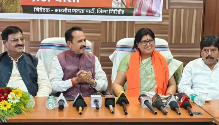 गिरिडीह। भाजपा इस बार भगवान बिरसा मुंडा की 150वीं जयंती को संविधान गौरव दिवस के रूप में मनाएगी। बुधवार को पूर्व मंत्री सह कोडरमा विधायक डॉक्टर नीरा यादव ने प्रेसवार्ता कर जानकारी दी। प्रेसवार्ता में भाजपा जिलाध्यक्ष महादेव दुबे, प्रदेश मंत्री दिलीप वर्मा, पूर्व मेयर प्रकाश सेठ, सांसद प्रतिनिधि दिनेश यादव, नगर अध्यक्ष हरमिदंर सिंह बग्गा, कामेश्वर पासवान, विनय सिंह मौजूद थे।