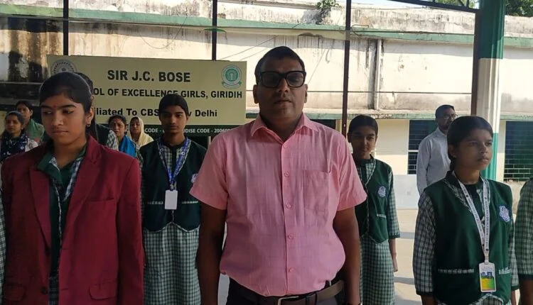गिरिडीह। राष्ट्रीय गीत वंदे मातरम के 150वर्ष पूरे होने के उपलक्ष्य में सर जे सी बॉस बालिका उच्च विद्यालय में प्राथना सभा के दौरान सामूहिक राष्ट्रीय गीत गायन का आयोजन किया गया। जिसमें विद्यालय के सभी विद्यार्थियों शिक्षक और शिक्षिकाओं ने भाग लिया।