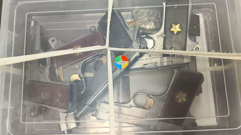 गुरुवार को एसपी डॉ विमल कुमार ने प्रेसवार्ता कर बताया कि पुलिस ने अवैध मिनी गन फैक्ट्री से 6 देशी पिस्टल, 11 मैगजीन, 7.65 एमएम बोर की जिंदा गोली 05, अर्धनिर्मित पिस्टल 12, पिस्टल का बैरल 13, पिस्टल का स्लाईड 12, लोहा का डाइस-04, बेस मिलिंग मशीन-06, मैगजीन बनाने का डाइस-02, हैन्ड ड्रिल मशीन-01, हथौड़ी, स्प्रिंग-01 बंडल, सनमाइका प्लेट (पिस्टल बट बनाने में प्रयुक्त)-12, सनमाइका प्लेट (पिस्टल बट बनाने में प्रयुक्त)-12, लोहा का छड़ (पिस्टल का स्लाइडिंग छड़ बनाने में प्रयुक्त) 8, लोहा की रेती-25, साइकिल का आकर का लोहा का फ्रेम (मैगजीन बनाने में प्रयुक्त) -15, गोल्डन रंग का लोहा का प्लेट-02, पिलास-3, पेचकस-4, हेक्सा आरी ब्लेड लगा हुआ-4, लोहा का छेनी जैसा औजार 18, लोहे का अलग – अलग आकर का प्लेट-4, न् आकार का लोहा का क्लैम्प -4, हेक्सा ब्लेड-10, स्कू-करीब 250 ग्राम, लोहा का स्प्रिंग (मैगजीन बनाने में प्रयुक्त) 40, स्कू-250 ग्राम, मोबाईल-06, हीरो पैशन मोटरसाइकिल नीला रंग निबंधन संख्या-श्रभ्प्व्ट5330 आदि सामान को भी जब्त किया है।
