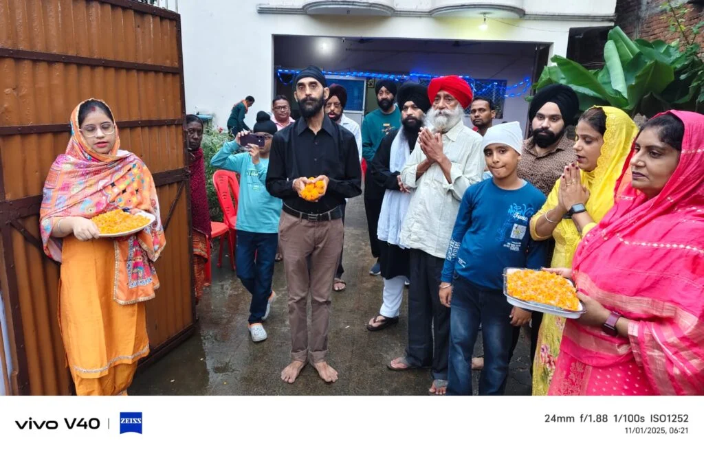 प्रभात फैरी में शामिल सात संगतों का सरदार गुरदीप सिंह बग्गा के आवास पर पुष्प वर्षा कर किया गया स्वागत