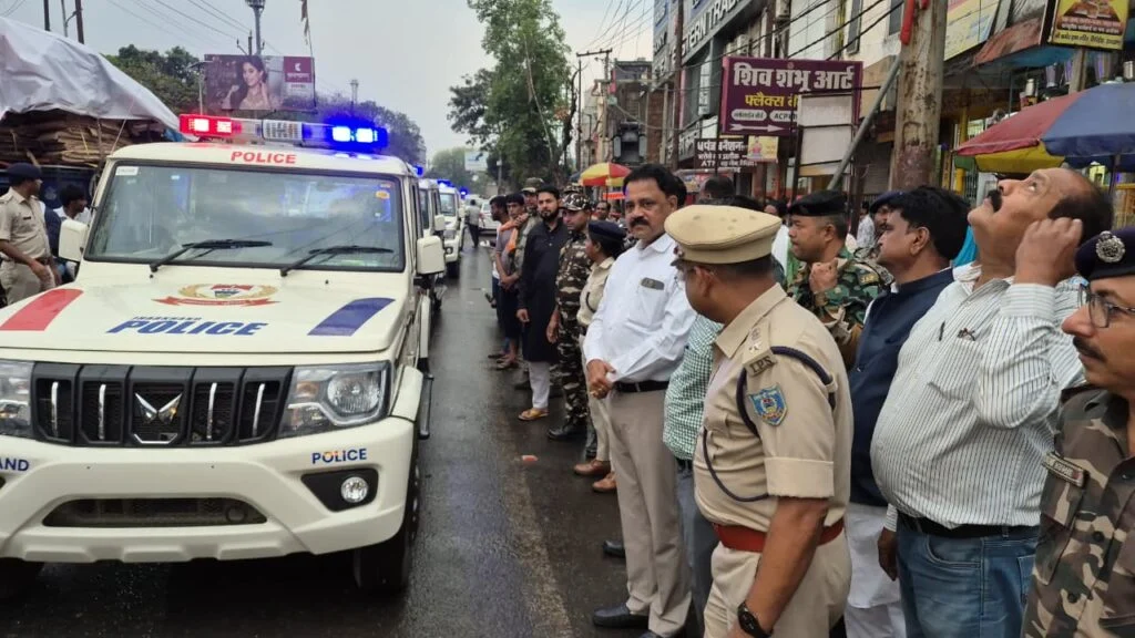 गिरिडीह। ईद, रामनवमी और सरहुल को शांतिपूर्ण और सौहार्दपूर्ण माहौल में संपन्न कराने को लेकर जिला प्रशासन पूरी तरह अलर्ट मोड़ है। इसी बीच झारखंड सरकार के मंत्री सुदिव्य कुमार ने शहर के बड़ा चौक से सुरक्षा व्यवस्था को मजबूत करने के उद्देश्य से पुलिस बल को रवाना किया। इस क्रम में मंत्री सुदिव्य कुमार, उपायुक्त रामनिवास यादव और एसपी डॉ विमल कुमार ने हरी झंडी दिखाकर कुल 32 पुलिस वाहनों को विभिन्न इलाकों के लिए रवाना किया।