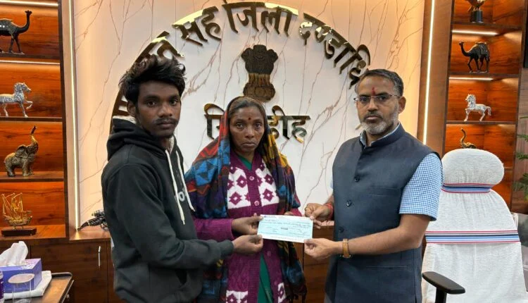 स्व0 हीरामन महतो की पत्नी को उपायुक्त ने दिया 11 लाख 80 हजार 78 रूपये का चेक