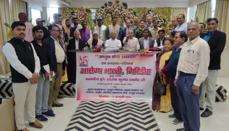 गिरिडीह। आरोग्य भारती गिरिडीह इकाई की एक बैठक गुरुवार को खंडोली स्थित नेचर व्यू रिजॉर्ट में संपन्न हुई । बैठक में आरोग्य भारती के राष्ट्रीय संगठन सचिव एवं आयुष मंत्रालय भारत सरकार के सलाहकार समिति सदस्य डॉ• अशोक कुमार वार्ष्णेय एवं प्रांत सचिव जयप्रकाश नारायण सिंह शामिल हुए। बैठक के दौरान आरोग्य भारती के जिला अध्यक्ष डॉ सतीश्वर प्रसाद सिन्हा एवं डॉ पुष्पा सिन्हा ने • अशोक कुमार वार्ष्णेय सहित अन्य अतिथियों को शाॅल और पुष्प गुच्छ भेंटकर स्वागत किया। इस मौके पर उपस्थित चिकित्सकों को आयुष सेवा सम्मान पत्र देकर सम्मानित किया गया।